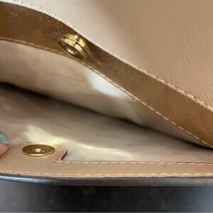 Exterior features gold-tone hardware, 1 back magnetic snap pocket and 1 front zip pocket; fits iPad or smartphone