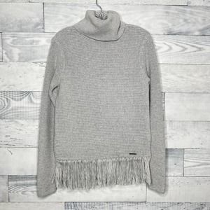 Michael Kors fringe-hem turtleneck in pearl heather gray. Excellent condition!