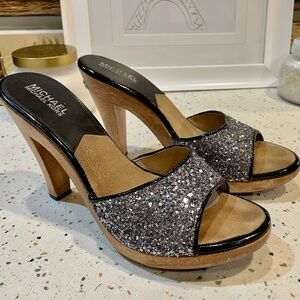 Michael Michael Kors Glitter Wooden Sandal Heels
