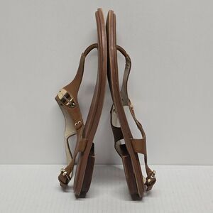MICHAEL Michael Kors Gold Logo Plate Brown Leather Thong Sandals 9