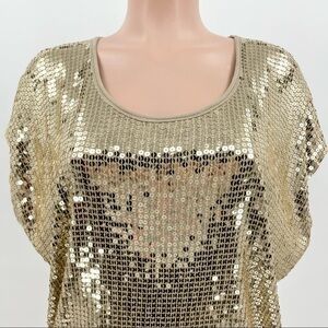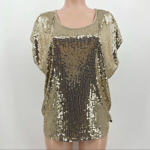 MICHAEL Michael Kors Gold Sequined Oversized Knit Top, Women’s Size Medium (loose, oversized fit).