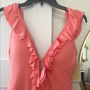 MICHAEL Michael Kors Grapefruit Ruffled One Piece Swimsuit Size 12