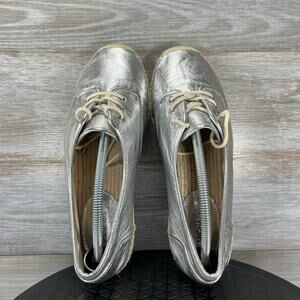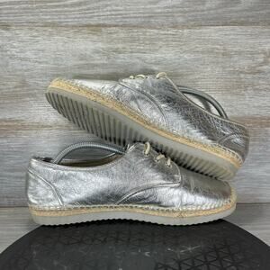 MICHAEL Michael Kors Hastings Lace-Up Metallic Leather Silver Flats Size 11