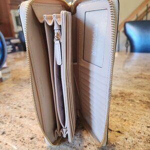 Organization shines with this continental wallet by MICHAEL Michael Kors. Allover embossing is punctuated with shiny gold-tone hardware, opening up to an interior with a place for everything, making this is a must-have accessory.