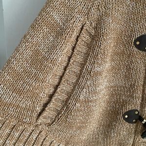 MICHAEL Michael Kors Knitted Cotton Cape Poncho Size XS Toggle Closure Camel Tan