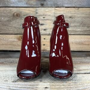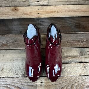 MICHAEL Michael Kors Lawson Open Toe Leather Bootie - Burgundy - 6 - NWOB