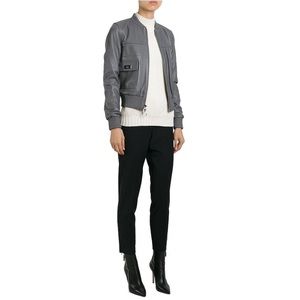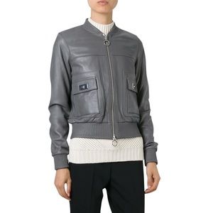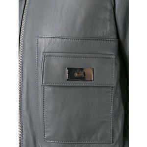 Grey lambskin leather bomber jacket from MICHAEL Michael Kors featuring two patch pockets with a twist-lock closure.