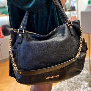 MICHAEL Michael Kors Leather Chandler Grained Leather Shoulder Tote Gold Chain