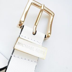 MICHAEL Michael Kors Leather White Belt with Gold Hardware Women's Size Medium