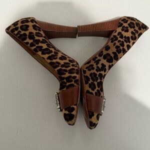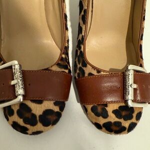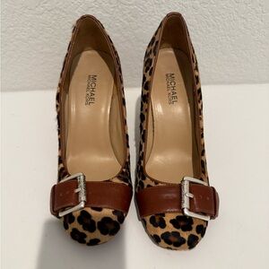 MICHAEL Michael Kors Leopard Print Calf Hair Buckle Block Heel Pump Vintage Size 7.5