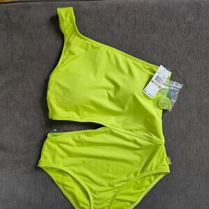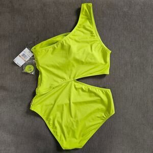 MICHAEL Michael Kors Limeade One Shoulder Side Cutout One Piece Swimsuit Sz 12