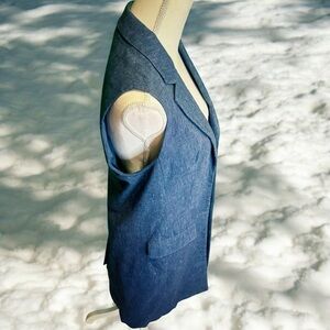 MICHAEL Michael Kors Linen-Blend Collared Longline Vest in Indigo Blue Size 6