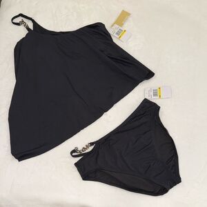 MICHAEL Michael Kors Logo Chain One Shoulder Tankini & Chain High Waist Bikini