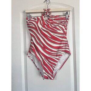 MICHAEL Michael Kors Logo Ring Halter One Piece Swimsuit Mod Zebra 8 Geranium