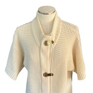 MICHAEL Michael Kors Long Short Sleeve Sweater Size Large is in very good condition. Instead of buttons, it has gold clasps. The sweater has short sleeves. It also has front pockets. Very beautiful sweater. It measure: