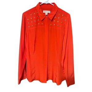 MICHAEL Michael Kors Long Sleeve Button-Up Blouse Gold Stud Orange Women's Large