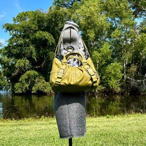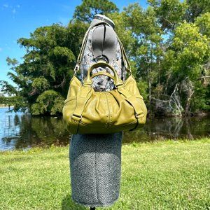 MICHAEL Michael Kors MK Astor Gold Studded Green Leather Convertible Bag Y2K