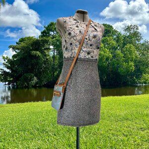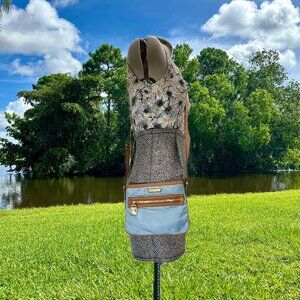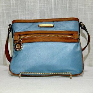 MICHAEL Michael Kors MK Kempton Powder Blue Nylon & Brown Leather Crossbody Bag