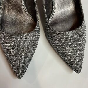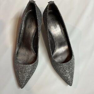 MICHAEL Michael Kors MK-Flex silver heels. The Evening Edit. Luxe shoes for glittering occasions. Glamorous and refined this collection of party. Perfect shoes is made for dressing up, stepping out and owning the night. Picture does not do them justice.Excellent condition. Worn one time only. No flaws.
