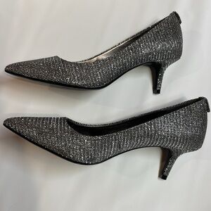 MICHAEL Michael Kors MK-Flex Kitten Pump Glitter Chain Mesh Silver/Blk Size 5.5