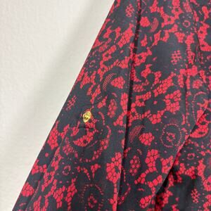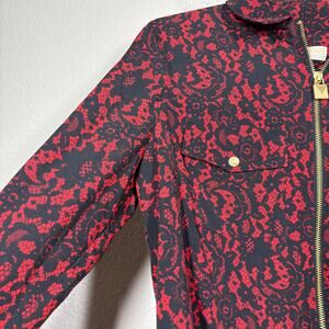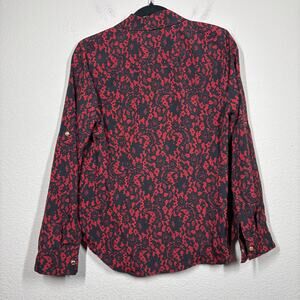 MICHAEL Michael Kors Medium Full Zip Shirt Crimson Black Floral Roll Tab Sleeves