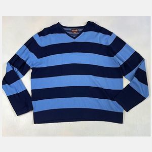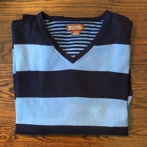 MICHAEL Michael Kors Mens Navy Blue Striped Cotton V Neck Sweater 2XL