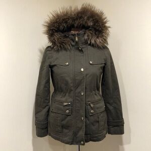 MICHAEL Michael Kors Military Jacket Size XSP XS Petite Army Green Fur Hooded