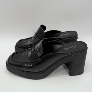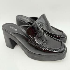 MICHAEL Michael Kors Mules Size 8 Eden Crackled Patent Leather Platform Black Leather Heels Slip-On