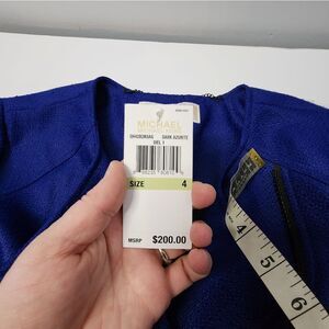 It's perfect for winter, fall, and spring weather. The jacket is a size 4 and features a solid multicolor pattern. It's ideal for travel, party/cocktail, casual, and business occasions. The jacket is zippered and has long sleeves. It's recommended to dry clean only.