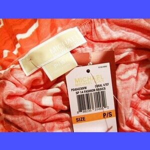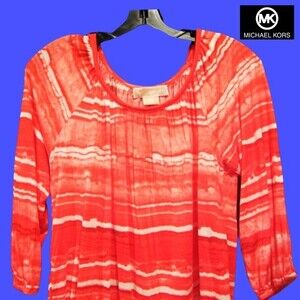 MICHAEL Michael Kors |NEW| CORAL REEF Dopamine Tie Dye Striped Peasant 3/4-Sleeve Blouse S. A dopamine tie-dye print in a vibrant choice of colors puts a summery spin on an easy-fitting jersey top in a billowy cut with a shirred scooped neckline and cinched hem. You will love it! Perfect for a special occasion, night out, or casual day at the mall. And it is made with excellent quality by MICHAEL Michael Kors. See pictures for all the details and the Table Chart in the pics to size this pant. Specific measurements are provided upon request.