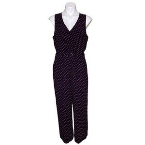 MICHAEL Michael Kors NWT $155 Dot Print Cropped Jumpsuit, Black Fuchsia Size 12