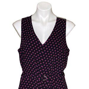This sleeveless MICHAEL Michael Kors cropped jumpsuit in black fuchsia dot print is a brand-new, trendy addition to your wardrobe. Made with a comfortable polyester blend, this women's size 12 jumpsuit is both stylish and practical.