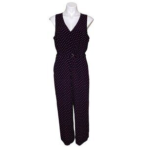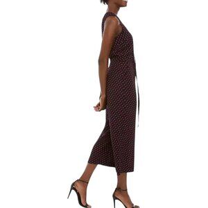 MICHAEL Michael Kors NWT $155 Dot Print Cropped Jumpsuit, Black Fuchsia Size 12