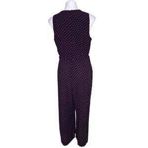 This sleeveless MICHAEL Michael Kors cropped jumpsuit in black fuchsia dot print is a brand-new, trendy addition to your wardrobe. Made with a comfortable polyester blend, this women's size 12 jumpsuit is both stylish and practical.