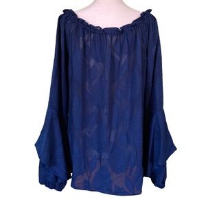 MICHAEL Michael Kors Navy Blue Leaf Jacquard Off-The-Shoulder Blouse (Size L)