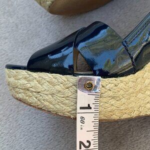 MICHAEL Michael Kors Navy Blue Leather Patent Espadrille Wedges Sz8