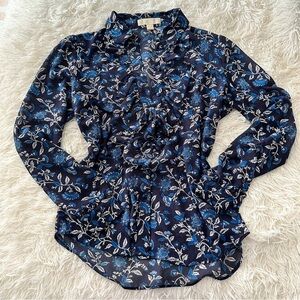 MICHAEL Michael Kors Navy Floral Ruffle Button Blouse Size Medium