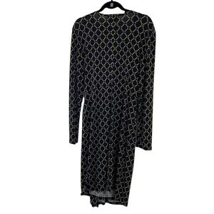 MICHAEL Michael Kors Navy Gold Logo Long Sleeve Dress Large