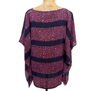 MICHAEL Michael Kors Navy Pink Floral Stripe Kaftan Style Blouse Size S/M