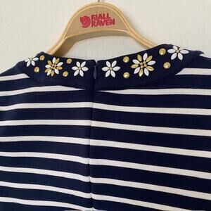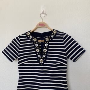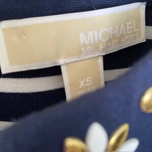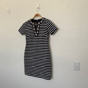 MICHAEL Michael Kors Navy & White Striped Short Sleeve Sheath Dress Floral Stud Women's XS