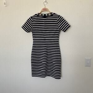 MICHAEL Michael Kors Navy & White Striped Sheath Dress Floral Stud Women's XS