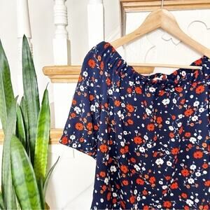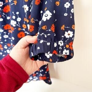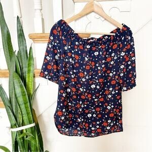 MICHAEL Michael Kors Off the Shoulder Top Blue Red Floral Puff Sleeve Crepe XS