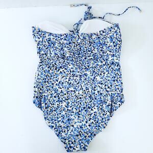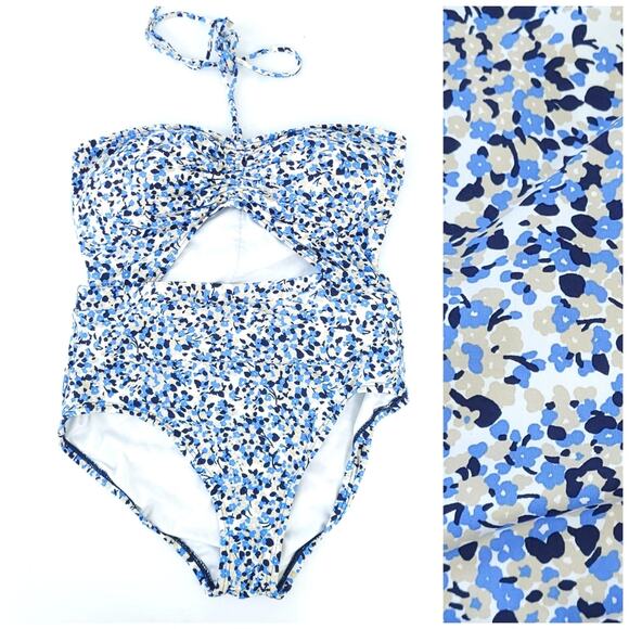 MICHAEL Michael Kors One Piece Swimsuit Monokini Size 10 Blue Tan Floral Ditzy. Excellent preowned condition. Stomach cutout design. Can tie around neck.