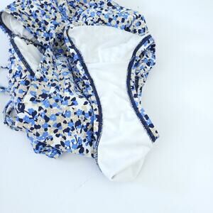 MICHAEL Michael Kors One Piece Swimsuit Monokini Size 10 Blue Tan Floral Ditzy