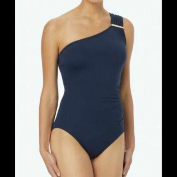 MICHAEL Michael Kors One Shoulder One-Piece Swimsuit Size 6 Navy Blue