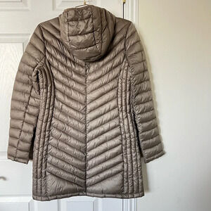 MICHAEL Michael Kors Packable Longline Hooded Puffer Jacket Size Medium Khaki