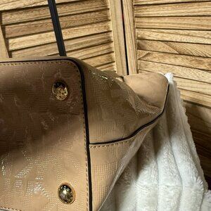 Nude color patent leather with embossed monogram makes this bag a stunner. Straps are leather with chain and can be worn on the shoulder or arm. One exterior pocket is perfect for your phone while 1 zipper pocket and 4 slips pockets inside keep your contents sorted nicely. This bag measures 12" x 9" x 5" and has a generous strap drop of 10". Good, clean preloved condition with a clean interior. Please view photos and feel free to ask any questions before purchasing. Thanks for looking!