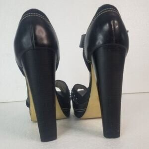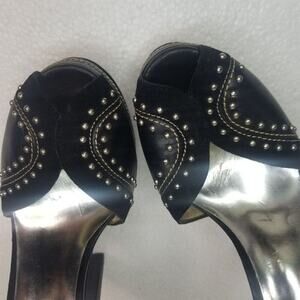 MICHAEL Michael Kors Peep Toe Black Platforms Heels Metal Detail Size 6.5