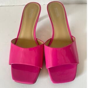 MICHAEL Michael Kors Pink and Silver Amal Patent Leather Kitten Sandals • Sz 7.5