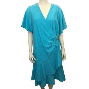 Surplice V-Neck Short Flutter Sleeve Ring Faux Wrap Dress